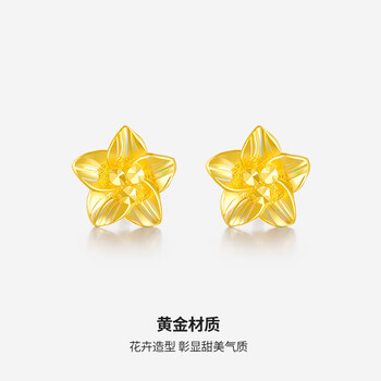 周六福足金999黄金耳钉女款小金花计价AA095065 约2.26g 一对生日礼物