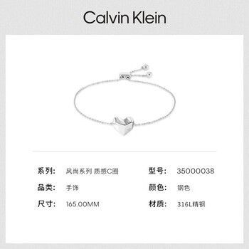 Calvin KleinCK风尚系列女款立体小爱心手链送女友钢色35000038节日礼物