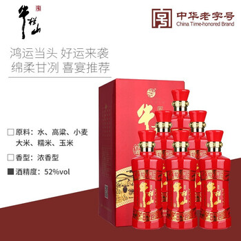 牛栏山百年鸿运老酒 浓香型白酒 52度 500ml*6瓶含礼袋