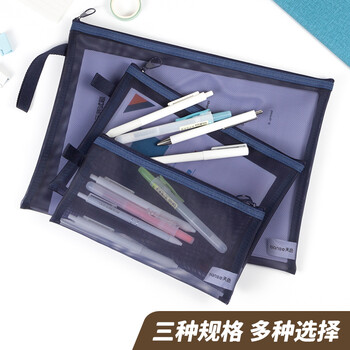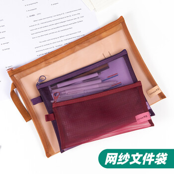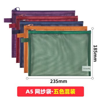 天色 复古色网纱文件袋 学生A5透明文具资料袋拉链式收纳袋试卷票据整理收纳袋 A5套装-5色 TS-254