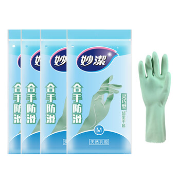 妙洁清洁家务橡胶手套 防水防滑皮厨房洗碗 中号 4双(灵巧型)