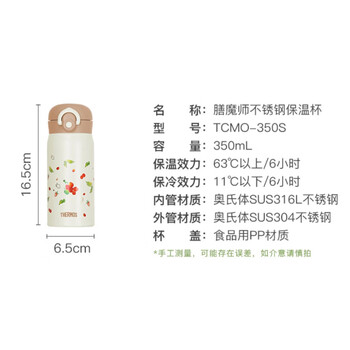 膳魔师(THERMOS)保温杯350毫升316钢男女儿童礼物咖啡水杯TCMO-350S WH(PM)