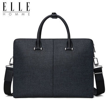 ELLE HOMME 手提包男简约时尚商务包横款牛皮公文包休闲电脑男包EA888201112灰蓝色
