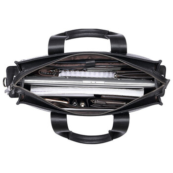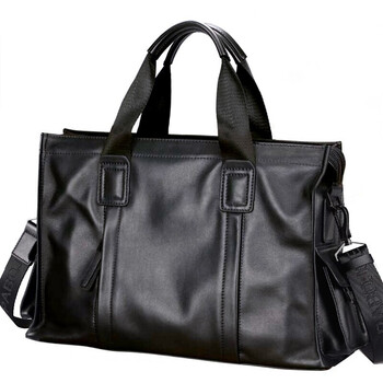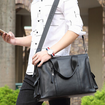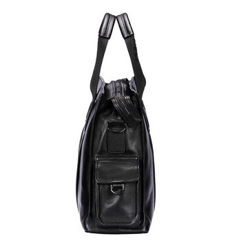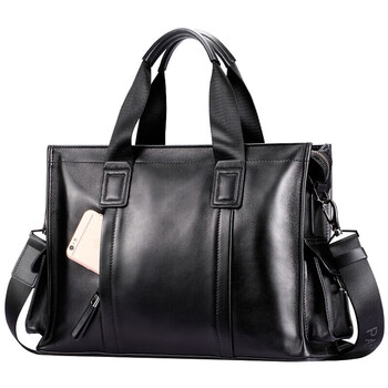 派保爵pabojoe男包手提包真皮公文包细腻柔软小牛皮商务电脑包休闲手提单肩斜挎包男PBJ148A黑色