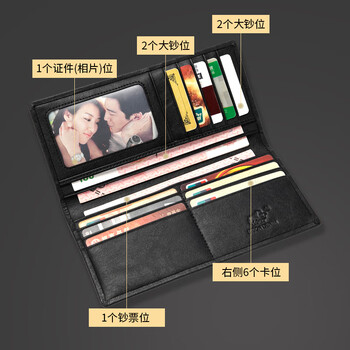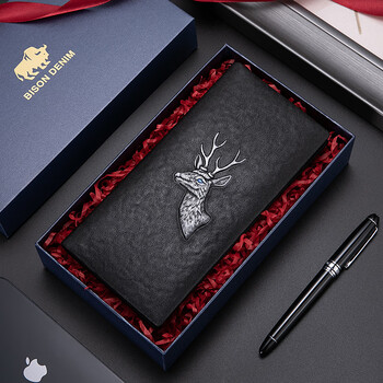 美洲野牛钱包男士长款真皮商务休闲鹿头标多功能钱夹生日礼物送男友