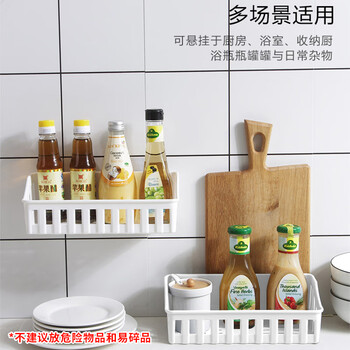 洁比世 卫生间置物架浴室壁挂免打孔收纳架厕所洗手间三角架白色2只装