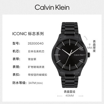 Calvin KleinCK标志系列情侣款石英表男表送男友黑色25200040节日礼物