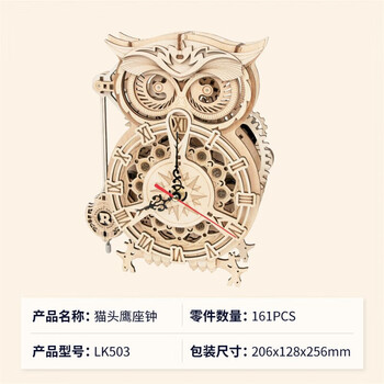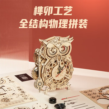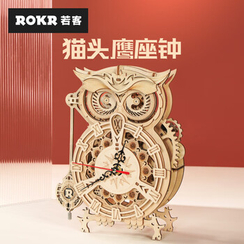 若客(ROKR)猫头鹰座钟 儿童积木玩具diy手工木质拼装模型立体拼图生日礼物