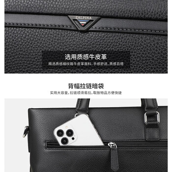 L'ALPINA意大利公文包男牛皮手提包电脑商务斜挎单肩包