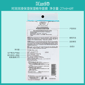 珂润(Curel)保湿精华面膜27ml*4片深度补水贴片式面膜敏感肌男女士进口护肤品