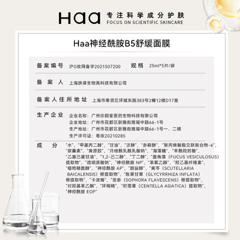 Haa面膜神经酰胺B5舒缓面膜 补水保湿提亮肤色收缩毛孔呵护女面膜5片