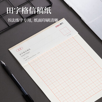 得力(deli)3432 16K/20张田字格书写纸信纸信签纸信稿纸 笔记信签作文纸草稿纸 3本装
