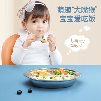 美厨(maxcook)316L不锈钢餐盘饭盒碗 配勺子儿童分格卡通 3格 猴 MCFT1864