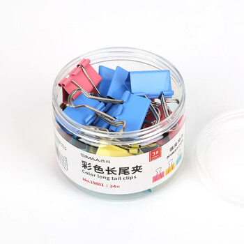 西玛(SIMAA)【开学季必备用品】24只32mm彩色长尾夹票夹 金属燕尾夹票据文件夹办公 文具用品24只/筒19881