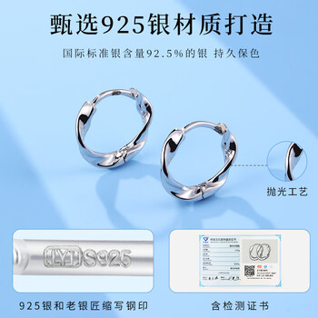 老银匠s925银耳环女圈圈扭纹耳圈不易褪色不易过敏养耳女士银耳圈新年