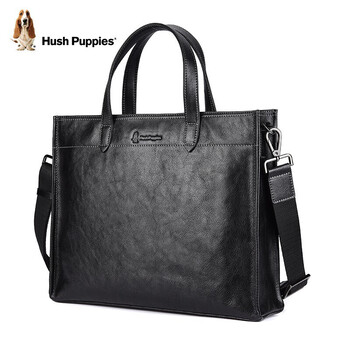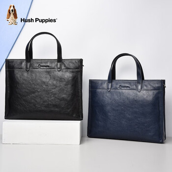 暇步士(Hush Puppies) 公文包男头层牛皮男士手提包大容量商务包男包礼物送男友 黑色