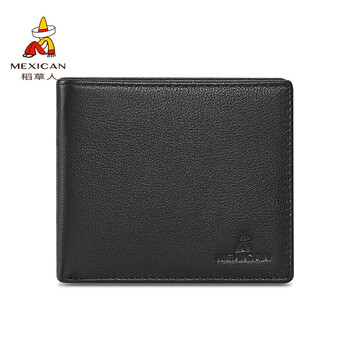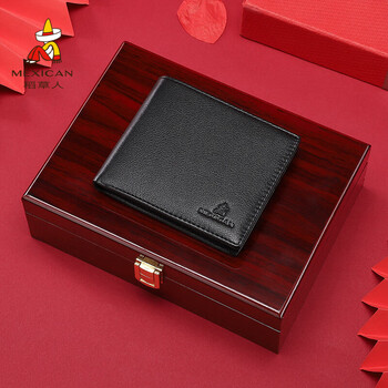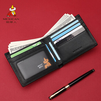 稻草人男短款钱包头层牛皮轻薄软卡包高档礼盒生日礼物送爸爸父亲老公