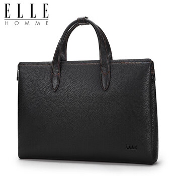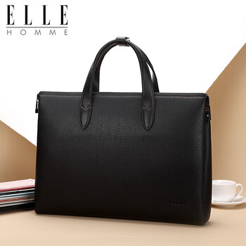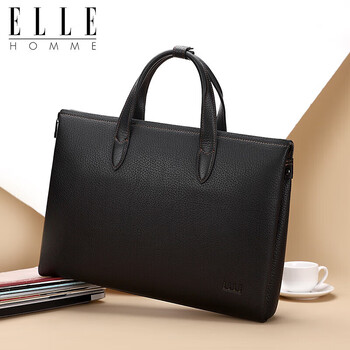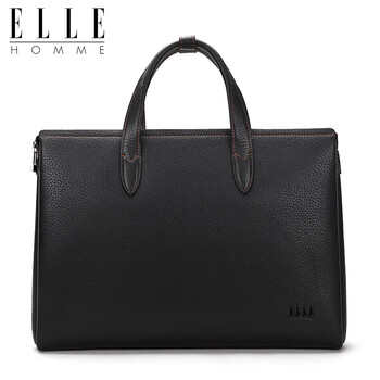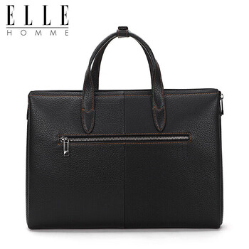 ELLE HOMME男士商务公文包 轻奢头层牛皮手提包 大容量电脑包男包EA188215810黑色