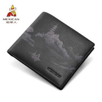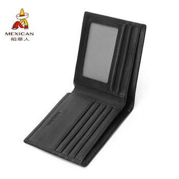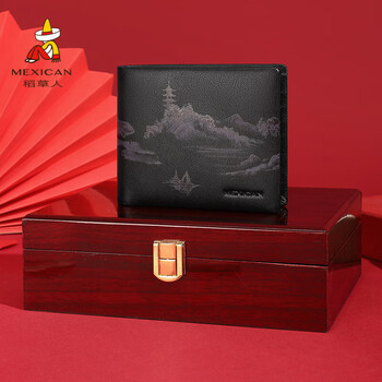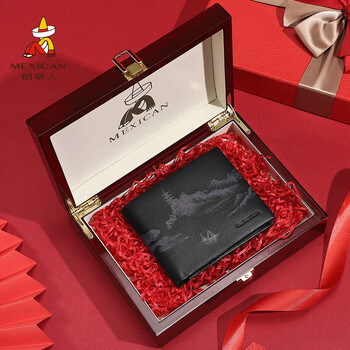 稻草人男钱包真头层牛皮钱夹皮夹票夹高档礼盒生日礼物送男生老公