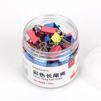 西玛(SIMAA)40只19mm 彩色长尾夹票夹 金属燕尾夹票据文件夹办公 文具用品 40只/筒19883