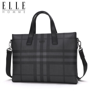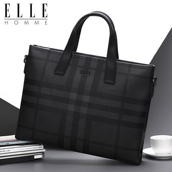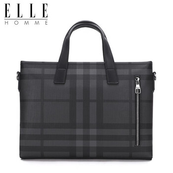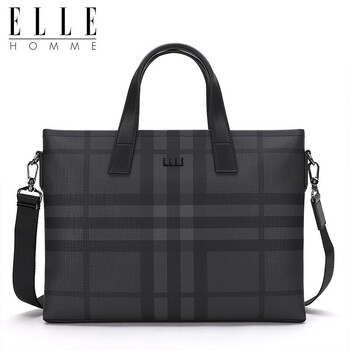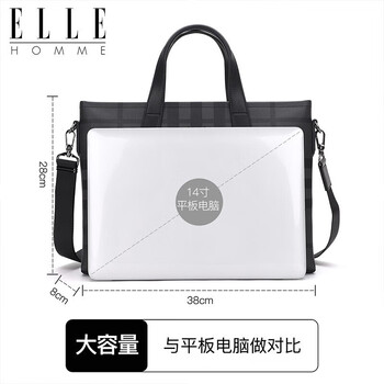 ELLE HOMME男士公文包 时尚条纹撞色手提包大容量PVC配皮单肩斜跨包14英寸电脑包EA188211211黑灰