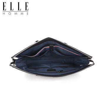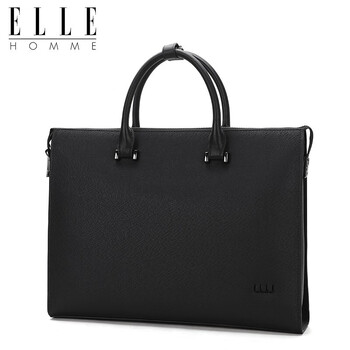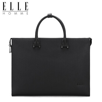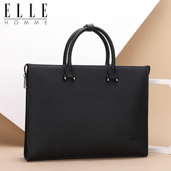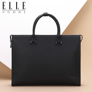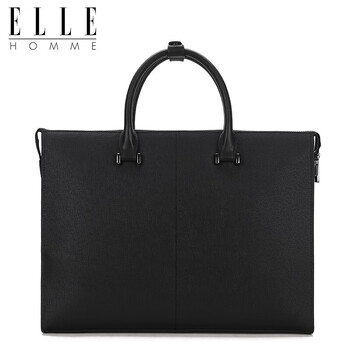 ELLE HOMME男士商务公文包 个性时尚横款牛皮手提包 大容量电脑包男包EA088209011黑色