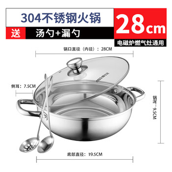 爱仕达 ASD 火锅304不锈钢清汤火锅盆28CM汤锅明火电磁炉通用FS28A6WG