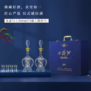 西凤酒 酒海窖龄20年52度蓝臻礼盒500ml*2瓶、分酒器*1个、白酒杯*4个、礼盒*1个