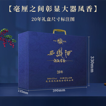 西凤酒 20年52度蓝臻礼盒 500mL*2瓶 凤香型白酒 婚庆喜宴请自饮送礼