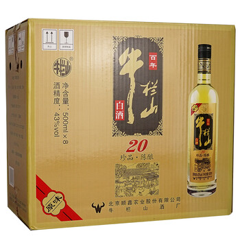 牛栏山 珍品陈酿(20)黑标土豪金 浓香型 白酒 43度 500ml*8瓶 整箱装