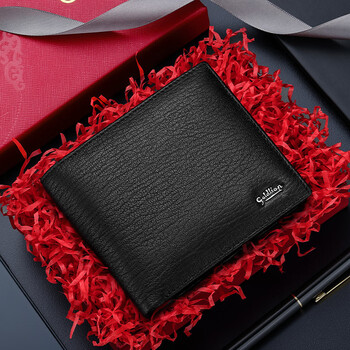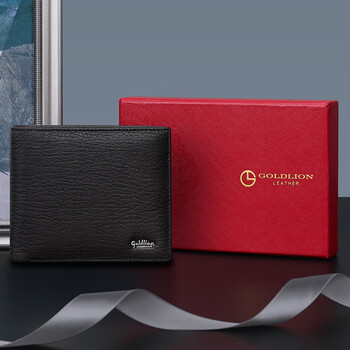 金利来男士钱包羊皮夹短款票夹两折钱夹礼盒 生日礼物送礼
