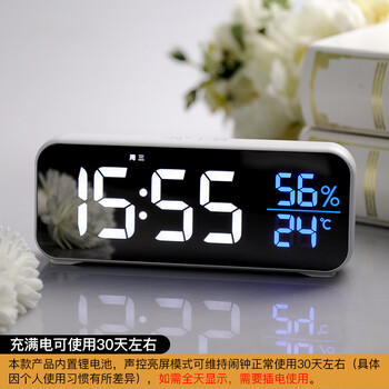 汉时(Hense)充电闹钟时尚简约电子钟学生多功能闹表个性座钟HA820白色开学季