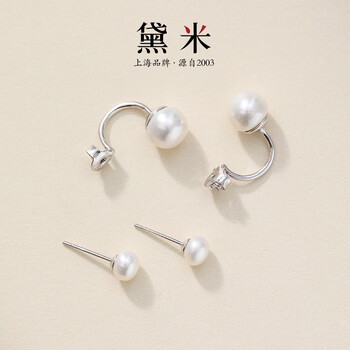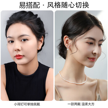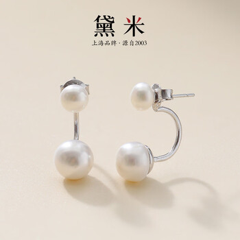 黛米S925银无核馒头圆8-9mm淡水珍珠耳钉母亲节礼物送女友老婆附证书