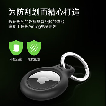 贝尔金(BELKIN)适用AirTag钥匙扣 苹果防丢器airtags保护 追踪器硅胶耐脏防摔壳 F8W973黑色
