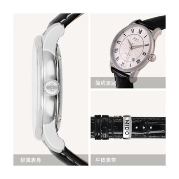 美度(MIDO)瑞士手表 贝伦赛丽 罗马盘 商务休闲 机械皮带男表送男友