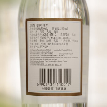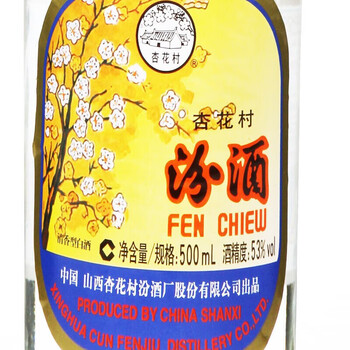 汾酒 出口玻汾 清香型白酒 53度 500mL*1瓶 黄盖铝盖 单瓶装口粮酒
