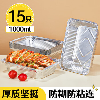 优奥 空气炸锅锡纸1000ml*15只锡纸盘一次性餐盒烧烤烤箱户外野餐露营
