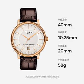 天梭(TISSOT) 卡森臻我系列男表 瑞士自动机械男士皮带腕表商务表生日礼物