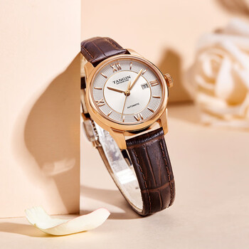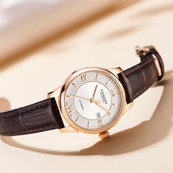 天珺(TANGIN)瑞士进口女士手表时尚皮带全自动机械瑞表女送女友 T7029LHWFSB