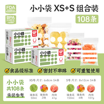易优家 食品袋密封袋小号保鲜袋加厚密实袋宝宝辅食分装袋 3盒108条