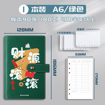 嘉然恒 A6现金记账本活页款家庭流水账册儿童理财本存钱册生活收入支出明细家用便捷多功能记账簿 财源滚滚