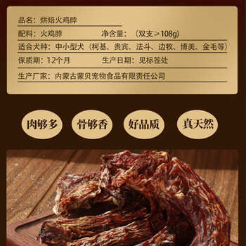 蒙贝 风干火鸡脖 狗狗零食 磨牙棒洁齿骨训犬奖励 108g共2支