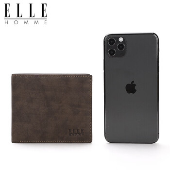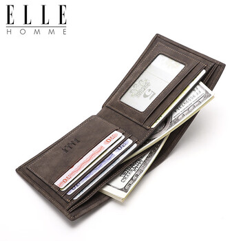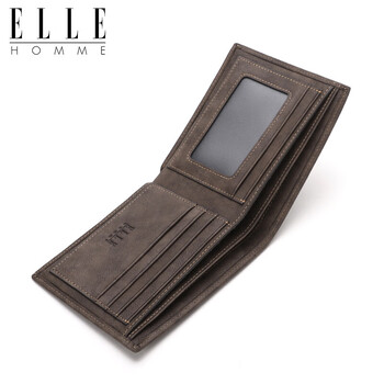ELLE HOMME男士短款钱包 头层牛皮多功能票夹 两折钱夹1620 生日礼物男