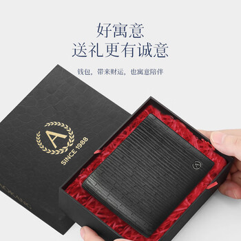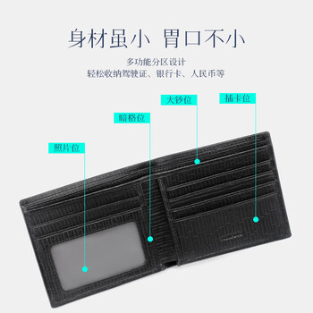 奥康男士钱包横款两折牛皮钱夹皮夹多功能零钱夹送老公生日礼物