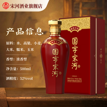 宋河粮液 国字六号 浓香型白酒 52度 500ml 单瓶装 婚宴喜宴送礼名酒