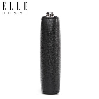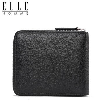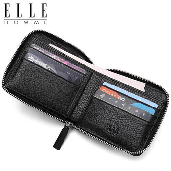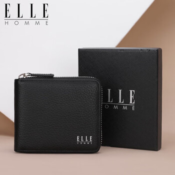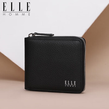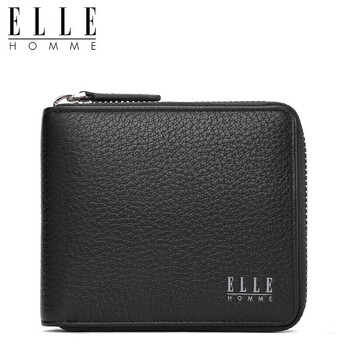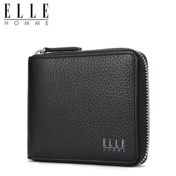 ELLE HOMME 男士时尚短款钱包 荔枝纹头层牛皮拉链零钱包4122 生日礼物男