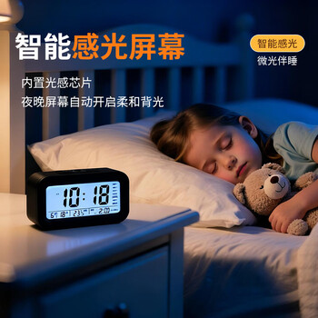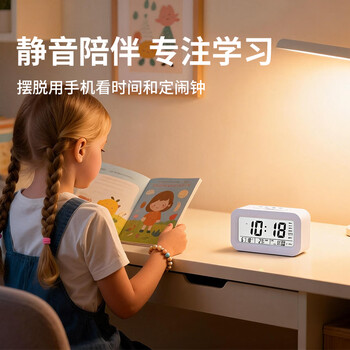康巴丝(Compas)电子闹钟夜光智能语音报时起床神器闹铃强力叫醒儿童学生床头钟开学必备 2139 白色 开学季
