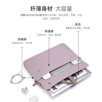 高尔夫(GOLF)电脑包女14英寸苹果笔记本电脑包手提单肩斜挎包防泼水商务包藕粉