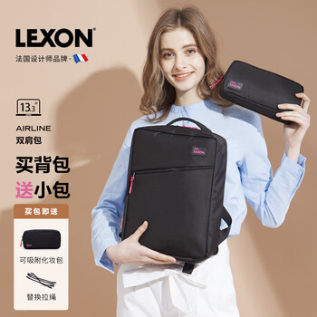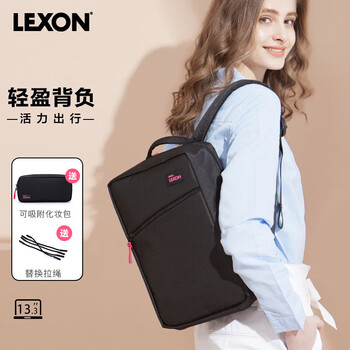 乐上(LEXON)双肩包女12/13英寸笔记本电脑包休闲轻便时尚书包旅行洗漱包 黑色