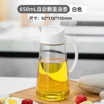 JEKO&JEKO油壶重力自动开合醋壶酱油瓶调料瓶不挂油大容量油瓶 650ml白色